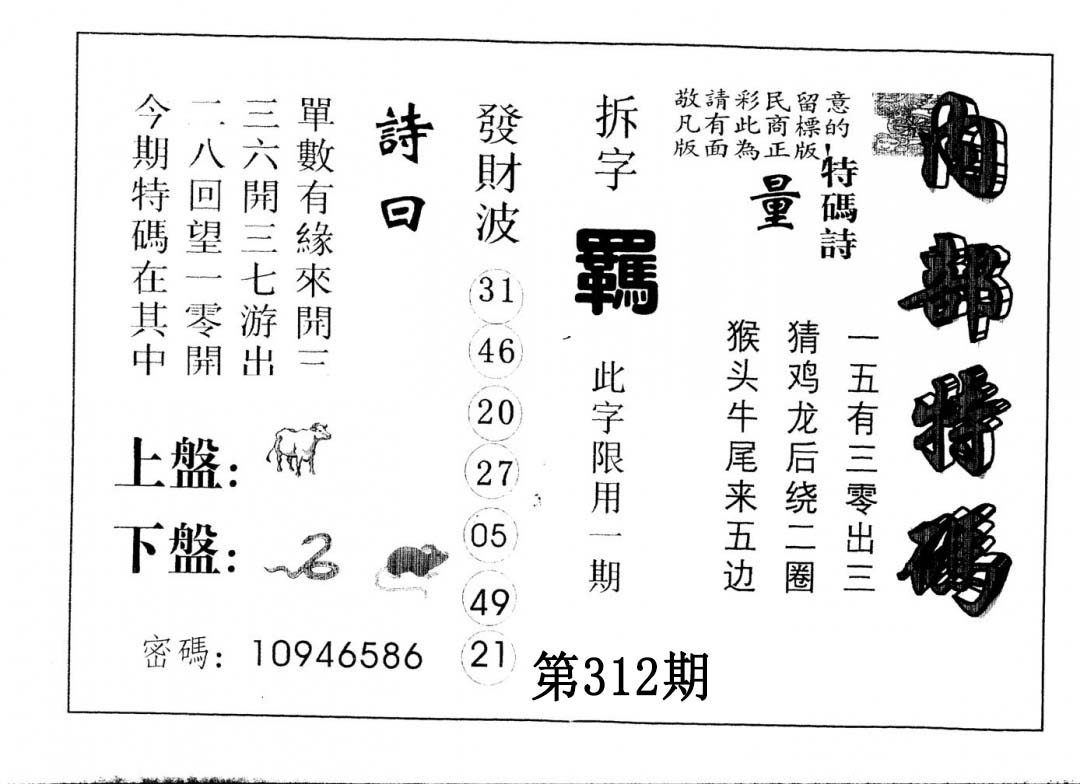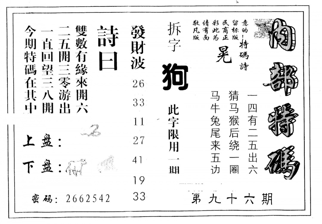 另版内部特码